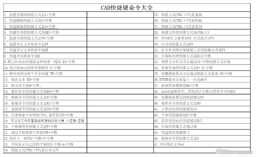 最全的cad快捷键命令大全