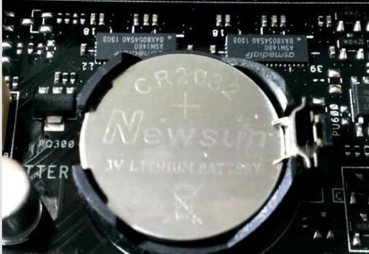 1、找到主板上CMOS电池的位置,外观如下图