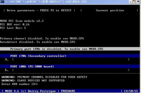 3、一般不用管他就会自动进入到以下图所示的界面,输入序号3,然后回车确定。说明一下这个3就是MHDD硬盘检测工具检测到的硬盘序列号。