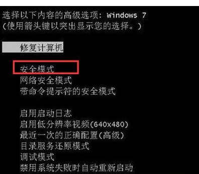1、重启计算机,然后长按F8直到出现高级启动菜单,选择安全模式进入安全模式桌面,如下图所示: