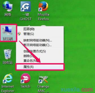 先在桌面“计算机”图标上右键,选择“属性”这一项。
