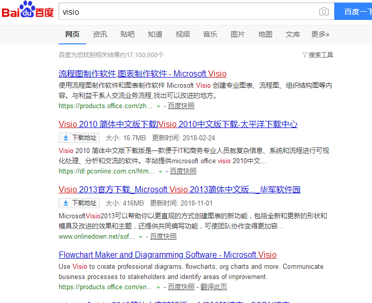 1.首先打开您的浏览器,在搜索框中输入visio,然后下载并安装该软件。