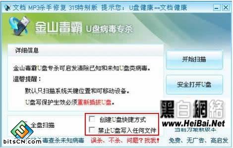 金山U盘病毒专杀提供的“创建U盘快捷方式”用于帮助用户轻松创建安全打开U盘的快捷方式,如图所示,用户只需勾选“创建U盘快捷方式”选项即可轻松创建U盘快捷方式。