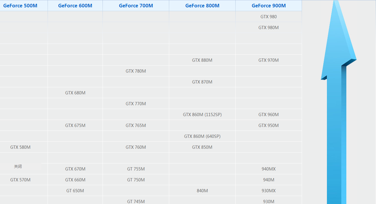 从图中我们可以看到geforce 900M系列的gtx980是最好的。