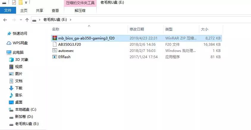根目录指的是点开U盘就能看到BIOS文件,便于后续更新时寻找。其中带主板型号的为BIOS文件(如AB350G3.F20),双击运行Efiflash是无法刷新的,因为autoexec和Efiflash为DOS下刷新BIOS用的工具。如果用Q-Flash刷新BIOS,可只保留AB350G3.F20文件。