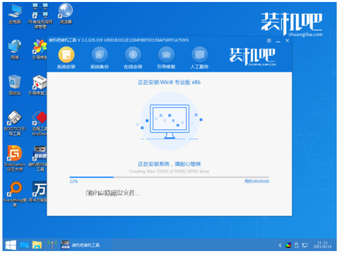 5、然后在pe系统桌面上,打开装机吧装机工具,选择win8系统点击安装到系统盘c盘。