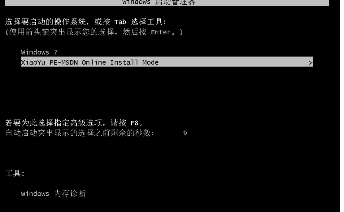 4、之后重启电脑出现windows管理器这个页面,此时我们选择第二个选项进入小鱼的pe系统。