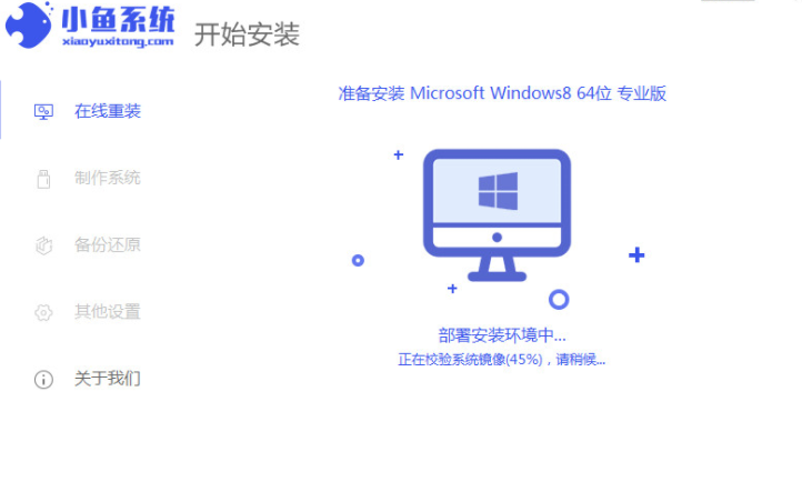 1.回到电脑桌面,打开我们的小鱼一键重装软件下载。进入软件主页后,点击安装win8,选择后单击下一步。