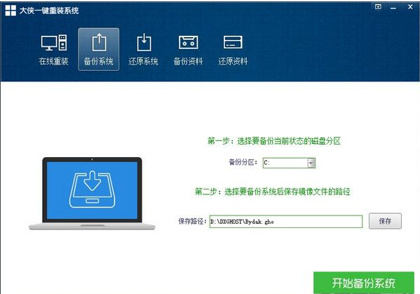 展开使用说明1.打开软件。点击下载软件,并正常打开,点击软件主界面的"点此开始重装系统",如果你本机中已经有过GHO镜像文件,则可以用"备份/还原系统"来还原。