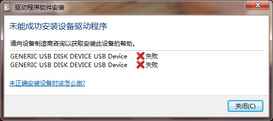 在使用U盘的时候,通常情况下将U盘插入电脑USB口之后,操作系统会自动安装驱动程序,一般情况下均可以正常安装驱动并可以使用U盘。但也常常提示“未能成功安装设备驱动程序”信息,导致无法安装U盘驱动程序,从而导致U盘无法被识别和使用,如下图所示: