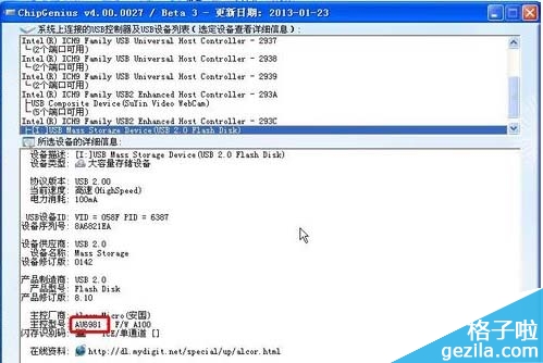 二、第二部运行ChipGenius,这里我们要知道优盘的芯片是什么才能进行量产。运行软件之后查看结果。复制主控型号信息(只要型号信息就行了)。