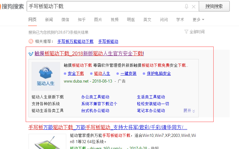 1,进入“搜狗”之后输入“手写板驱动下载”如操作