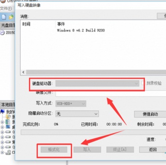 第四、弹出一个对话框,点击【格式化】按钮,格式化U盘。这里要注意,选择默认格式化,格式化后就点击【写入】,然后等待刻录成功字样。如图。