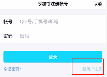 1、打开我们的手机QQ app,点击新用户注册