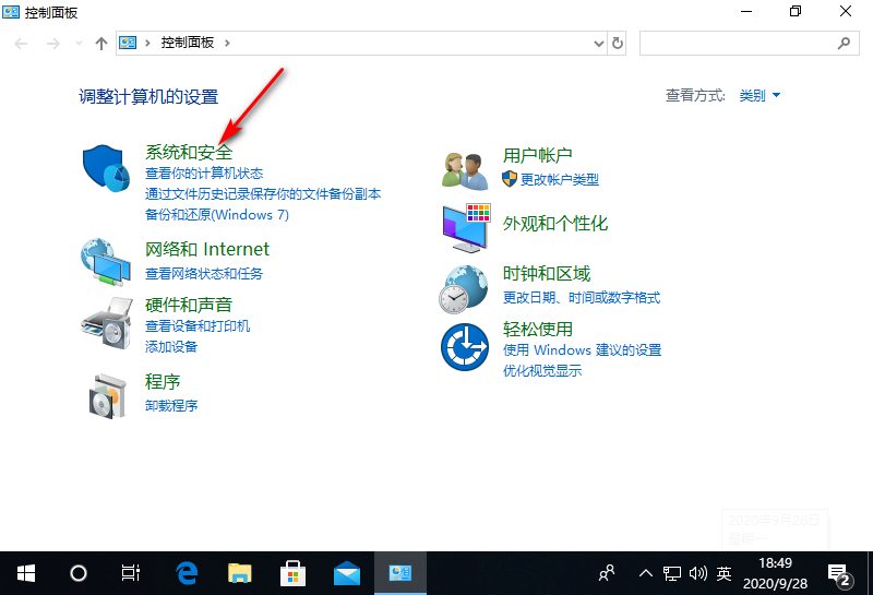 1. 首先在开始菜单找到控制面板,双击打开,进入“系统和安全”。