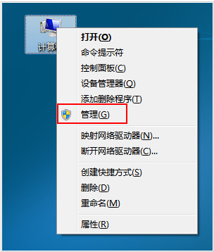 1、鼠标右键点击桌面上的计算机图标,然后选择管理。