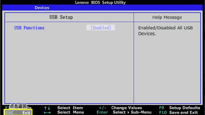 1、BIOS禁用了USB设备。(进入BIOS,将“Enable USB Device”修改为“Enable”)