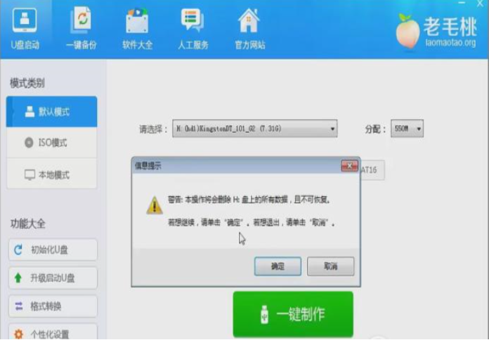 6、U盘格式化完成之后,点击一键制作,就可以开始制作U盘启动盘了。