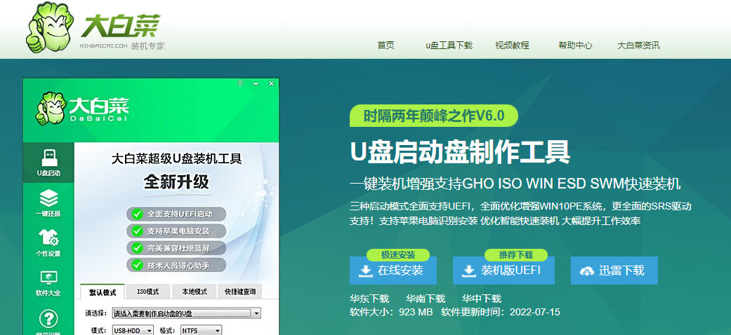 一、大白菜超级U盘启动盘制作工具