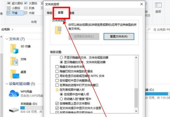 2:这样便进入文件夹选项窗口,点击上方的“查看”。