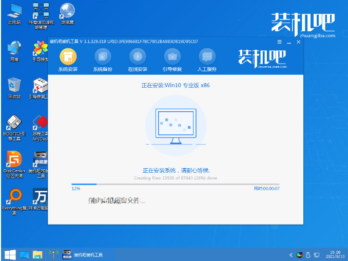 1、下载安装装机吧工具软件并打开,插入U盘,选择制作系统,点击开始制作。