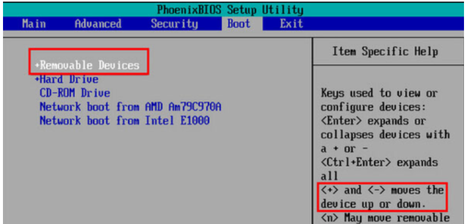 3.将“removeble device”移动到最上面,按“+键”实现向上移动。