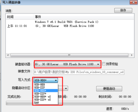 4.选择u盘之后,写入方式选择“USB-HDD+”,点击写入就可以啦。