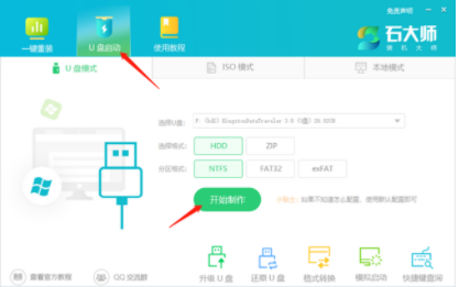 1、直接去电脑上面下载石大师软件,直接安装电脑上面,进入页面,选择U盘启动。