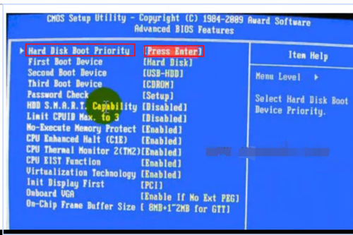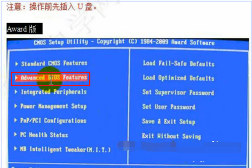 在BIOS SETUP设置程序里找到高级BIOS特性设置Advanced BIOS Features。(以Award BIOS为例,绝大部分的主流版本,其它版本的与此类似)