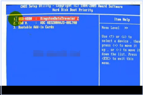 在弹出的对话框里选择USB-HDDxxx,通过+、-号将其移到第1项