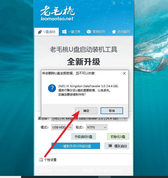 软件版本:老毛桃U盘启动盘制作工具 V9.5.2109
