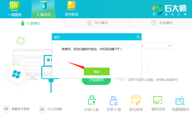 3、等待制作成功后,就会自动告诉大家启动键是什么。