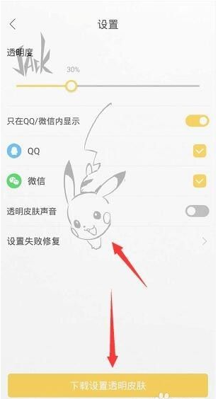6、选择好主题之后就会自动转到设置页面,在页面下方点击 下载设置透明皮肤。