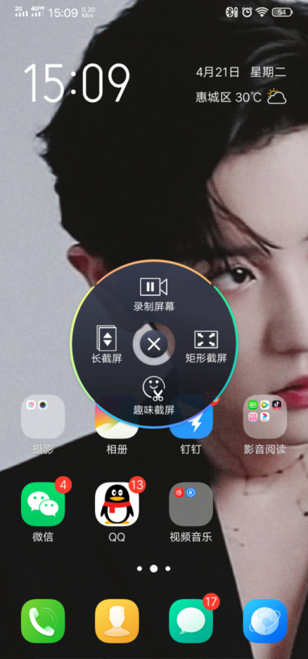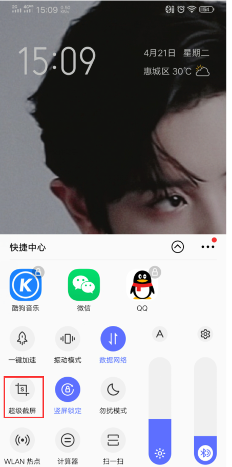 1.在vivo手机的上拉菜单中,单击“超级屏幕截图”功能。