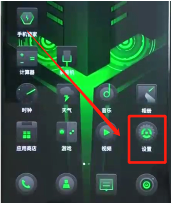 1.首先进入黑鲨手机桌面,点击设置