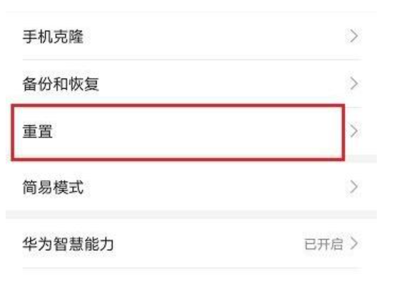 2、找到“重置”选项进入。
