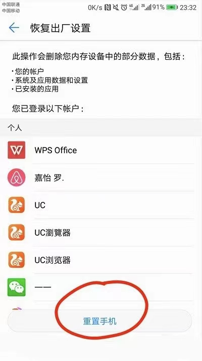 使用华为手机自动的重置功能更新安装系统: