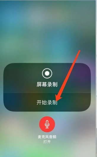 5.上滑,呼出快捷控制页面,点击如图所示按钮,能开始录屏(这时候录屏没有声音),如果想开启声音,长按如图所示按钮