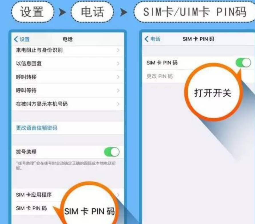 2、苹果iPhone为例的话,在设置-电话选项--SIM卡/UIM卡 PIN码中,如下图所示。