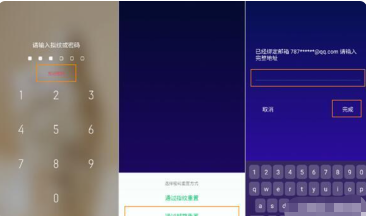 点亮屏幕,连续输入五次密码,提示密码错误,点击忘记密码,选择通过验证邮箱/指纹重置密码,根据提示输入正确验证信息后重新设置密码即可。