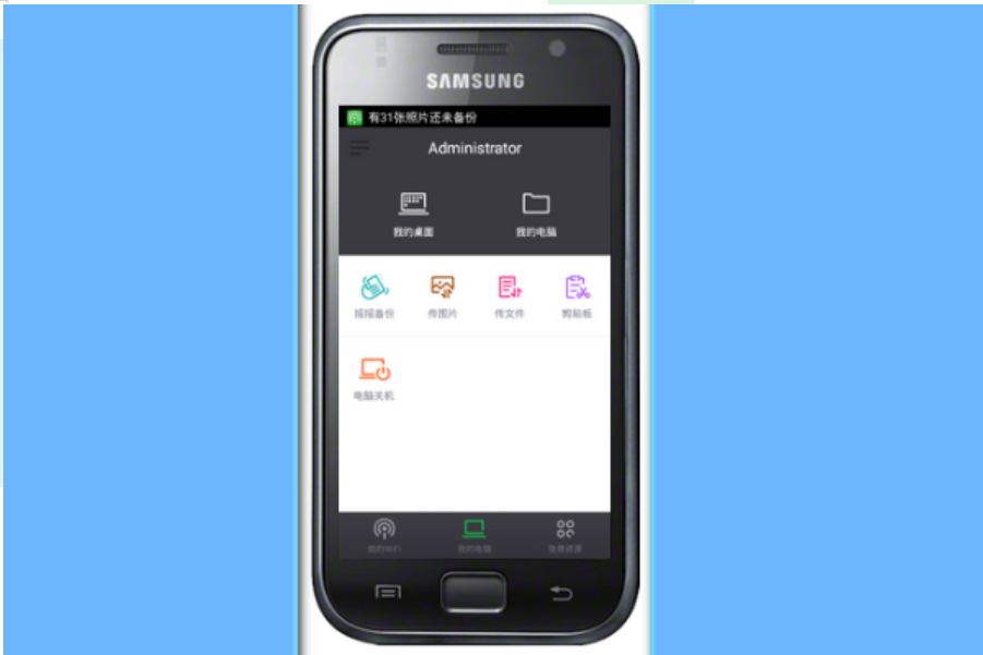 8、现在不管是文件传输、备份,还是访问电脑硬盘及直接拷贝文件等操作都可以用手机控制电脑了。