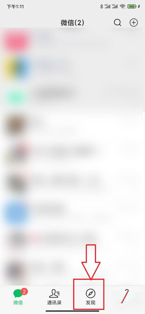 1、首先打开手机上的微信软件,点击最下方的"发现"设置。