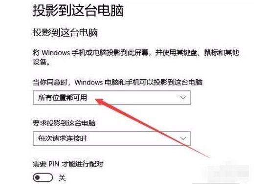 4、在右侧窗口中,下拉如图菜单,选择“所有位置都可用”。