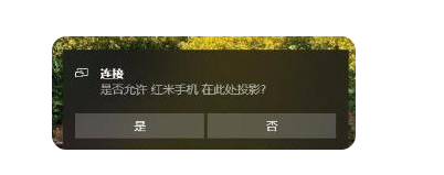 10、这时在电脑屏幕右下角就会显示出是否允许手机在此处投影的提示,点击“是”。
