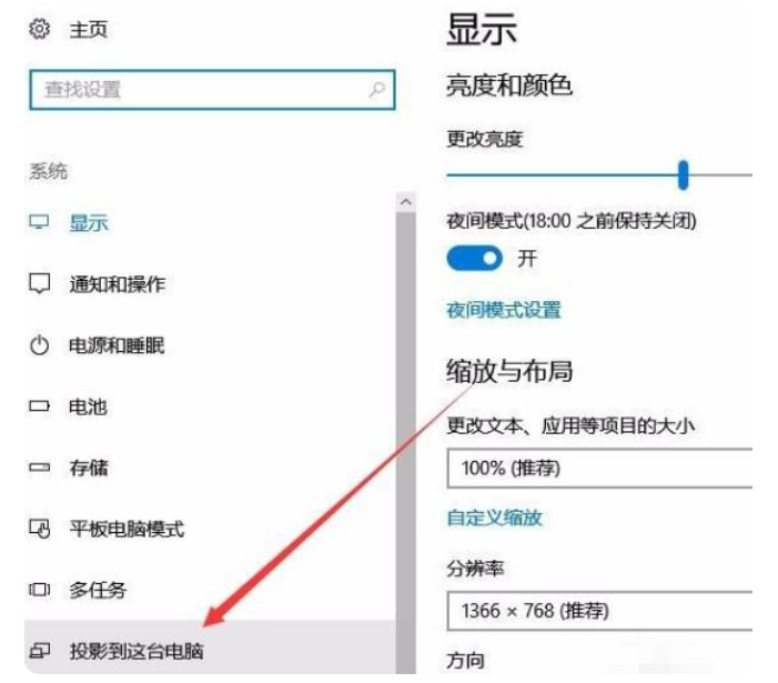 3、进入设置窗口,点击左侧边栏的“投影到这台电脑”。