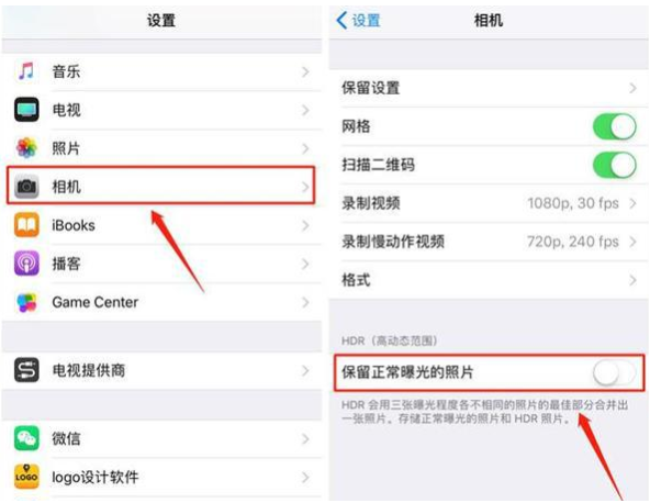 首先在苹果手机的桌面点击设置进入,选择【相机】,点击【保留正常曝光照片】选项,将其关闭即可清理。