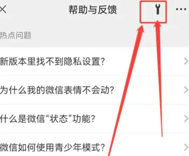 2、找到并点击并帮助与反馈→点击右上角的扳手图标。