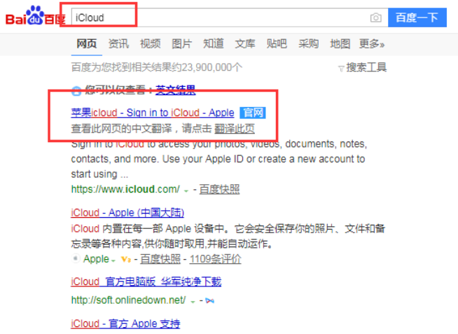 4、这样当苹果手机不慎丢失或被偷的时候,我们就可以通过定位找回。首先在浏览器上搜索“iCloud”进入苹果网址。