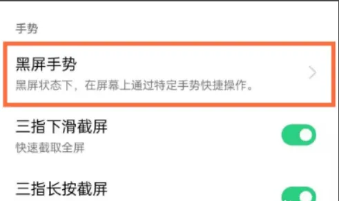 4、选择上方的黑屏手势选项。