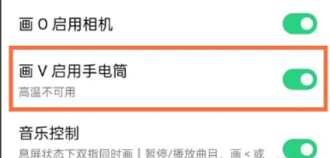 5、开启【画v启动手电筒】,当黑屏时在屏幕画v即可。